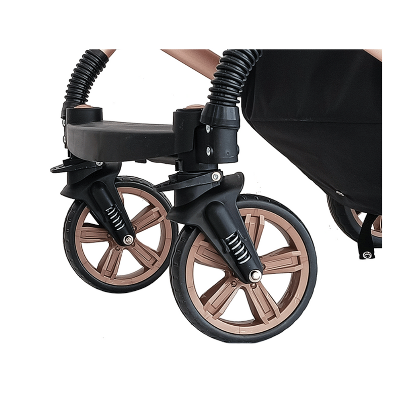 Napredna tehnologija blaženja udaraca u naÅ”em kolicu osigurava neusporedivo glatku i udobnu vožnju, apsorbirajući neravnine terena i stvarajući savrÅ”eno okruženje za vaÅ”e dijete.