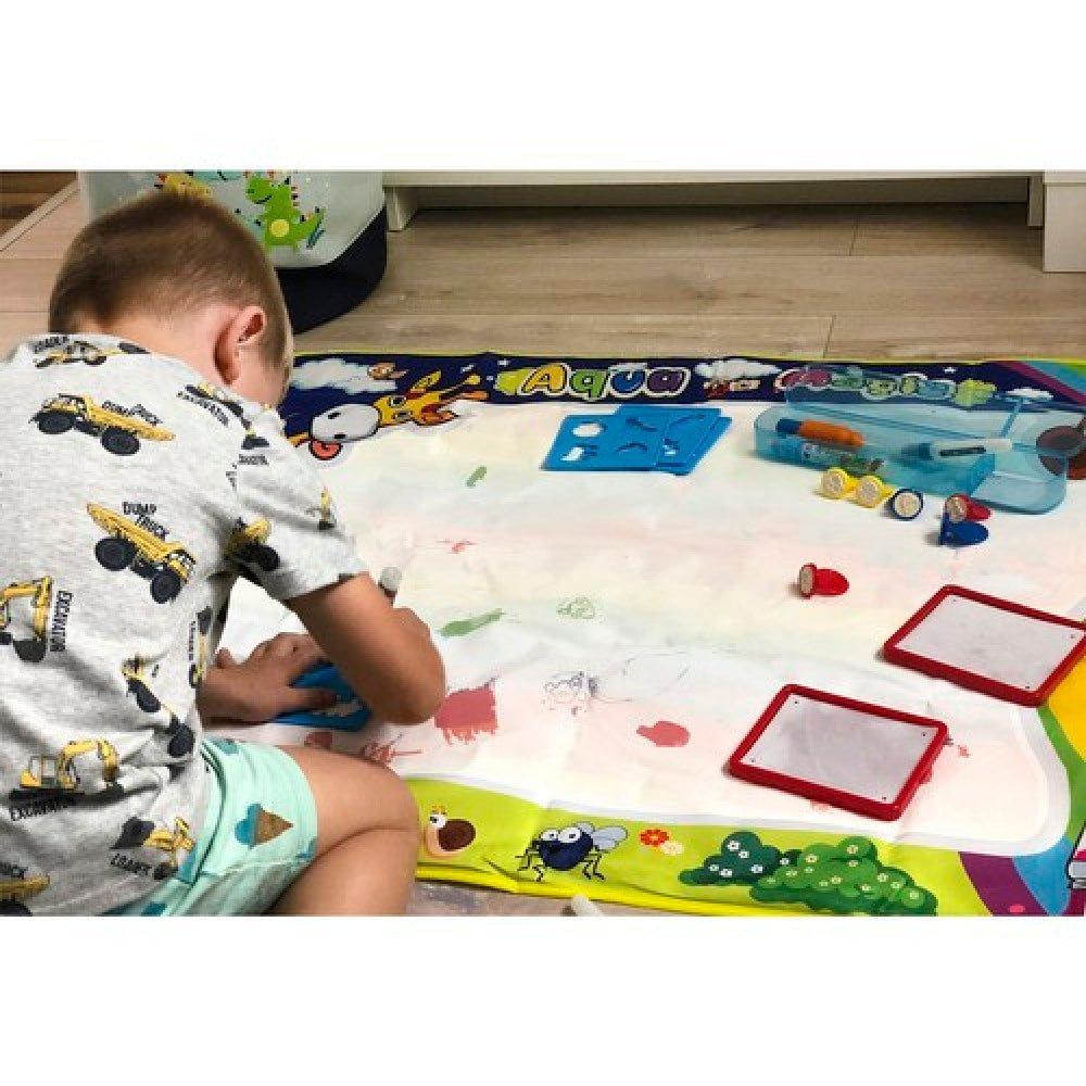 🎓 UTJECAJ NA DJETETOV RAZVOJ – podloga razvija maštu i potiče kreativnost, poboljšava ručne vještine za učenje crtanja, brojeva, slova, oblika i boja. Tijekom igre u grupi, pozitivno utječe na socijalne i integracijske sposobnosti te uči međusobnoj suradnji. Uz podlogu dolaze predlošci brojeva i slova, tako da dijete može naučiti pisati po već pripremljenim oblicima. Podlogu je lako održavati čistom. Dno podloge je vodootporno.