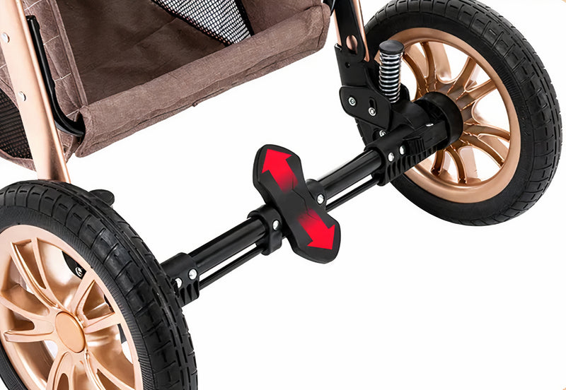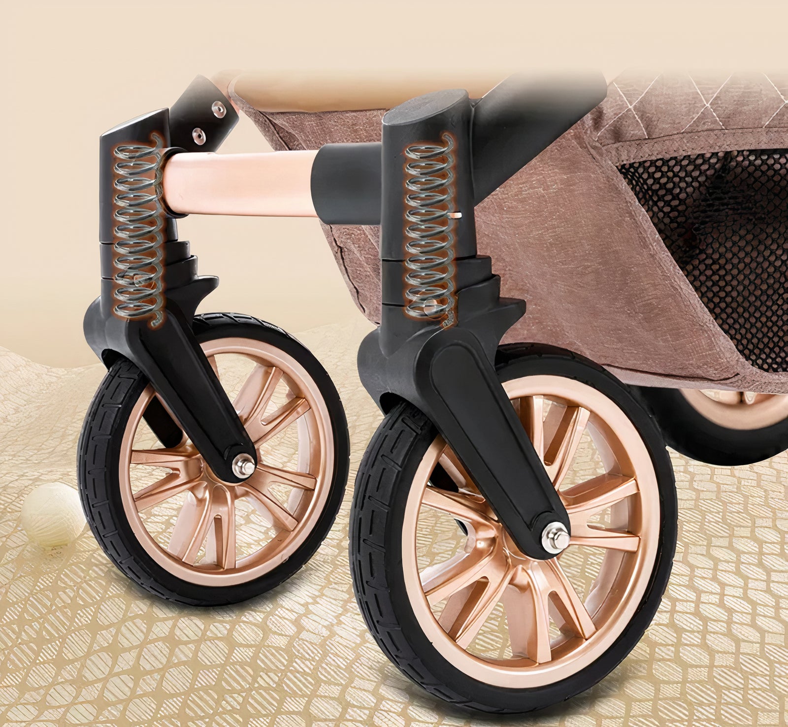 Doživite najglatkiju vožnju za vaÅ”eg maliÅ”ana sa sustavom ovjesa na četiri kotača. NaÅ”a kolica bez problema klize po bilo kojem terenu, osiguravajući nedostižnu udobnost. Od neravnih pločnika do pustolovnih staza, vaÅ”e dijete može uživati u nježnom i tapeciranom putovanju.