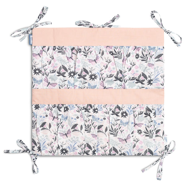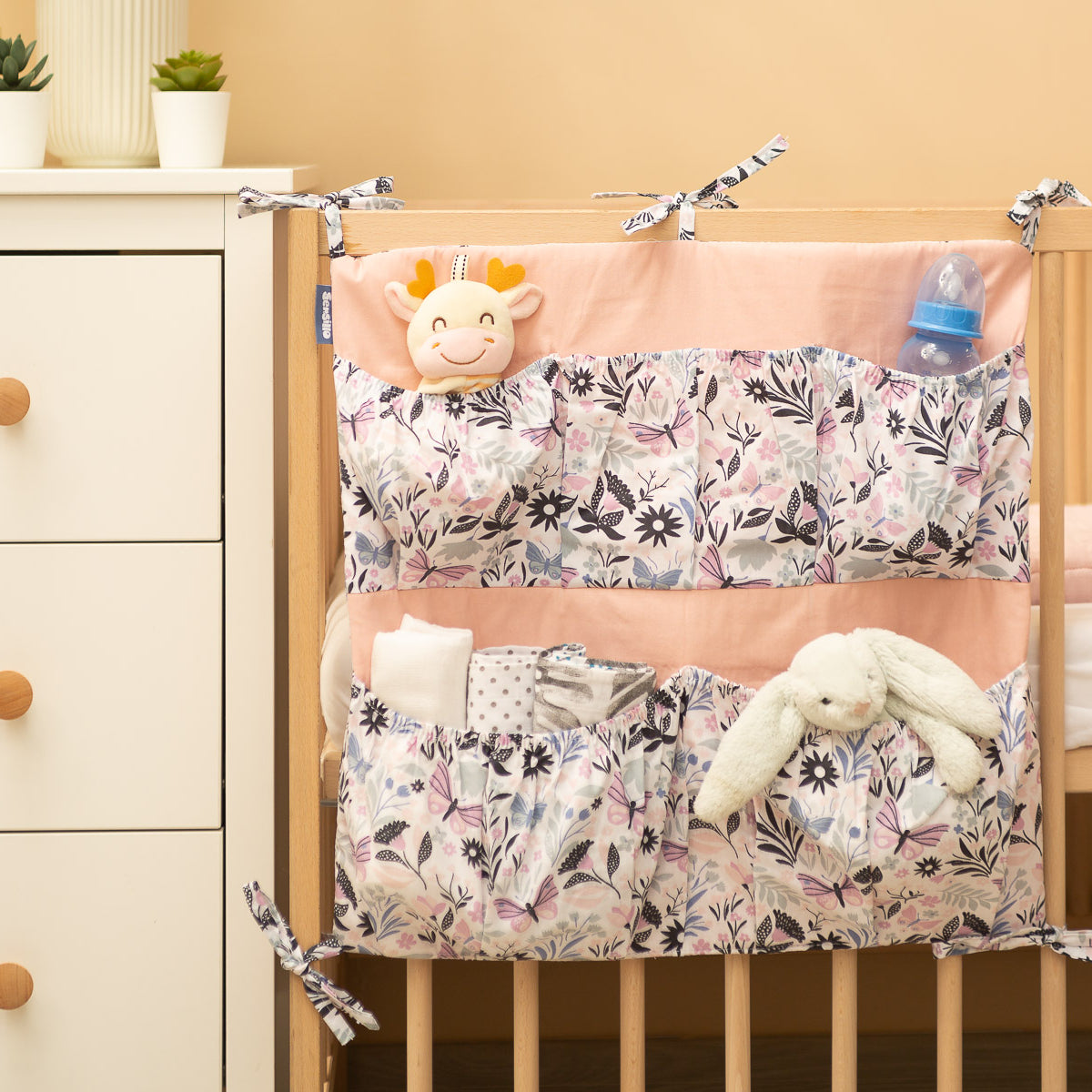 Organizator za krevetić nije samo praktičan proizvod, već i ukras dječje sobe. Ima ukupno 5 džepova, ojačanih elastičnom trakom, koji će primiti sve potrebne dodatke. Organizator se može jednostavno postaviti na okvir krevetića pomoću ušivenih traka. Dodatno je ojačan slojem silikonskog flisa. Vanjski dio je obrubljen sa 100 % pamukom. Organizator se može kombinirati s drugim proizvodima iz naše ponude.