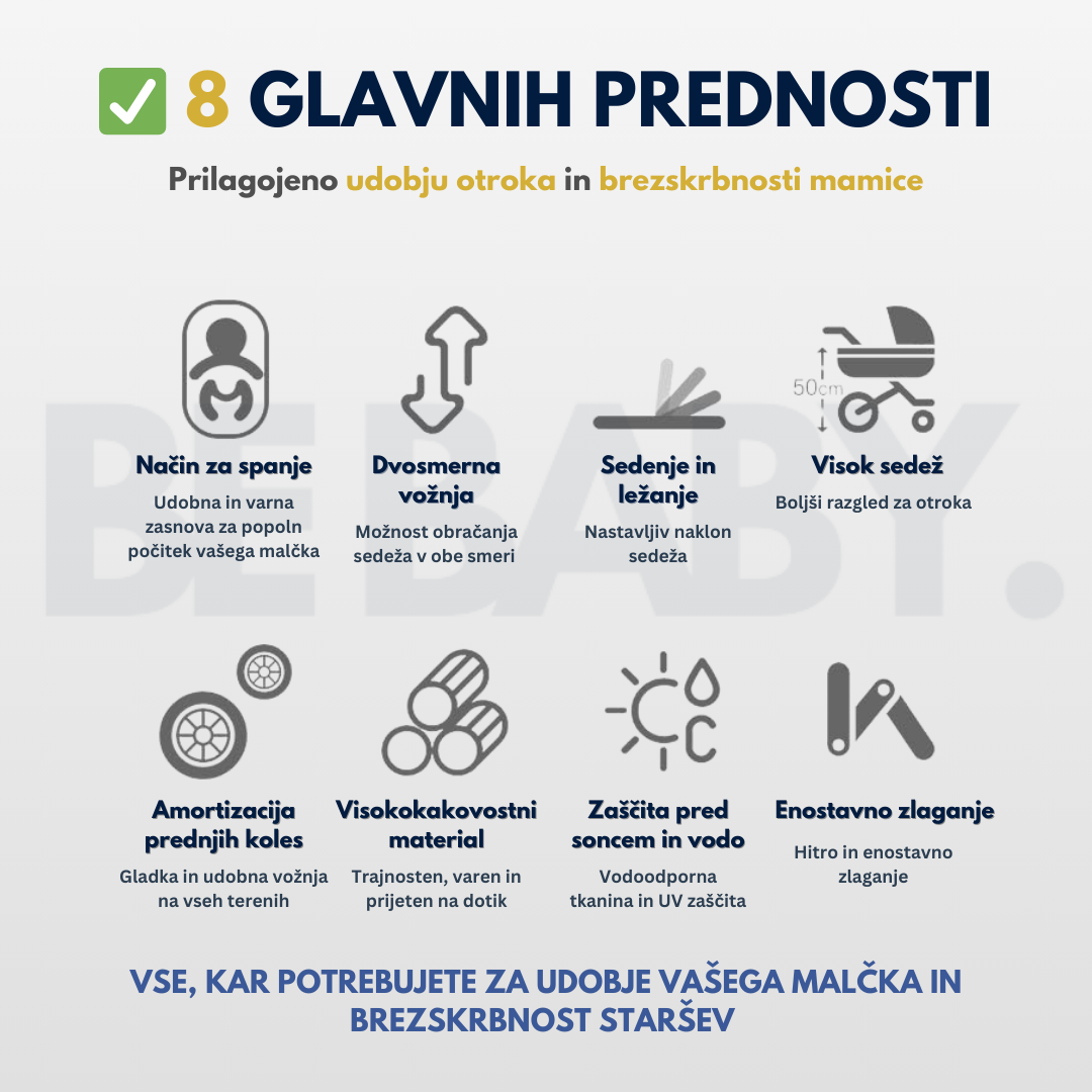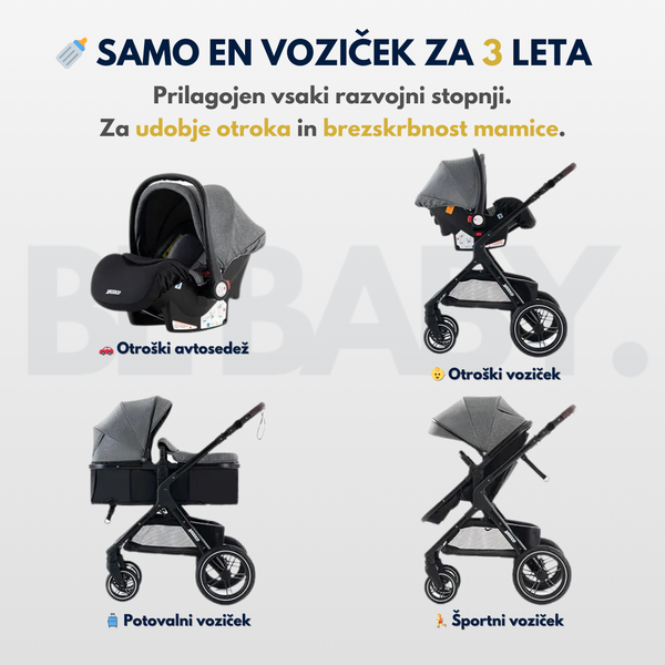 • 3u1 funkcionalnost (koÅ”ara, sportski dio, autosjedalica)