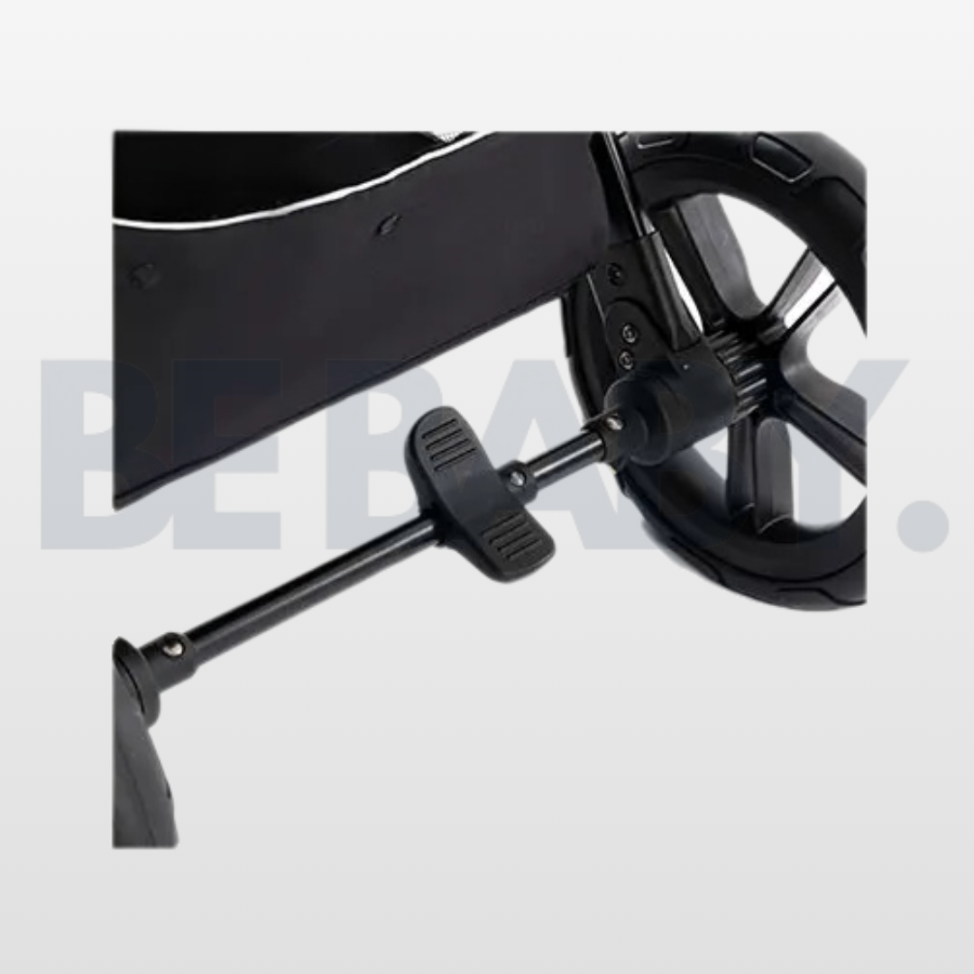 Kočioni mehanizam je dizajniran tako da ga možete aktivirati jednostavnim pritiskom noge, Ŕto osigurava maksimalnu praktičnost za roditelje.