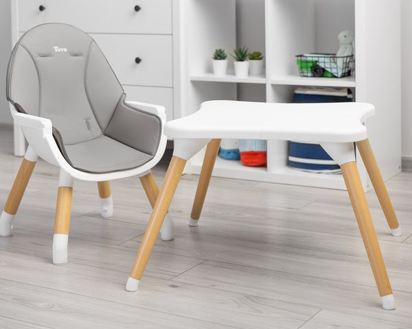Tuva je visoka stolica koja spaja elegantan skandinavski dizajn i vrhunsku funkcionalnost. Namijenjena je roditeljima koji žele svojoj djeci osigurati udobnost, sigurnost i prilagodljivost u jednom proizvodu. S jednostavnom transformacijom u komplet stola i stolice te kvalitetnim materijalima, Tuva je izvrstan izbor za svaki dom.