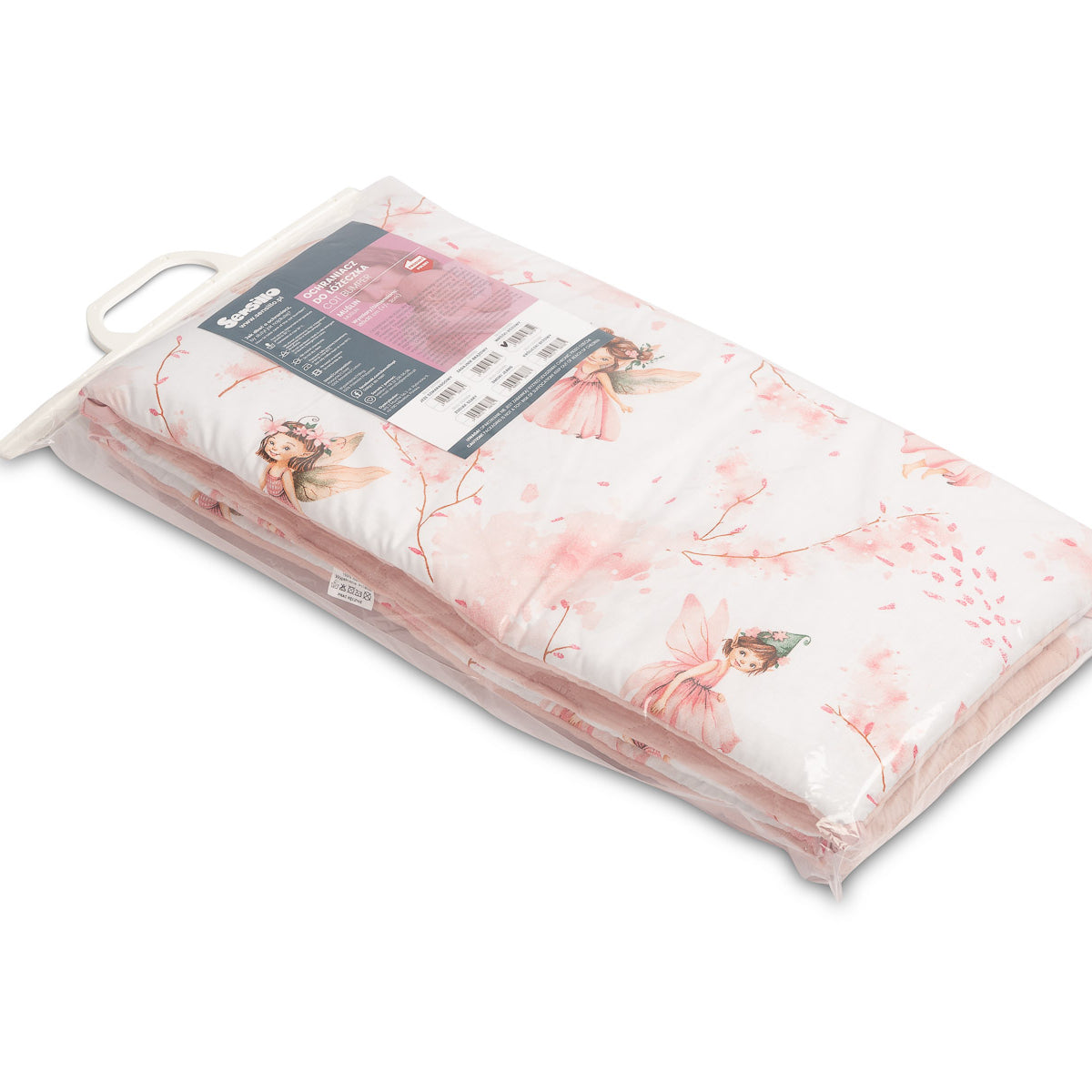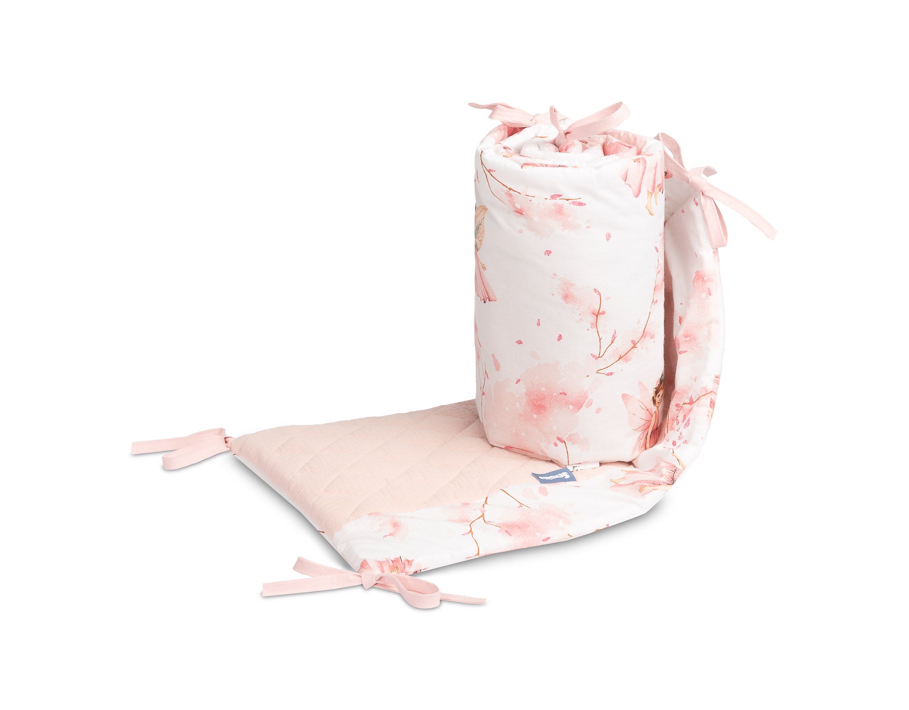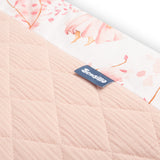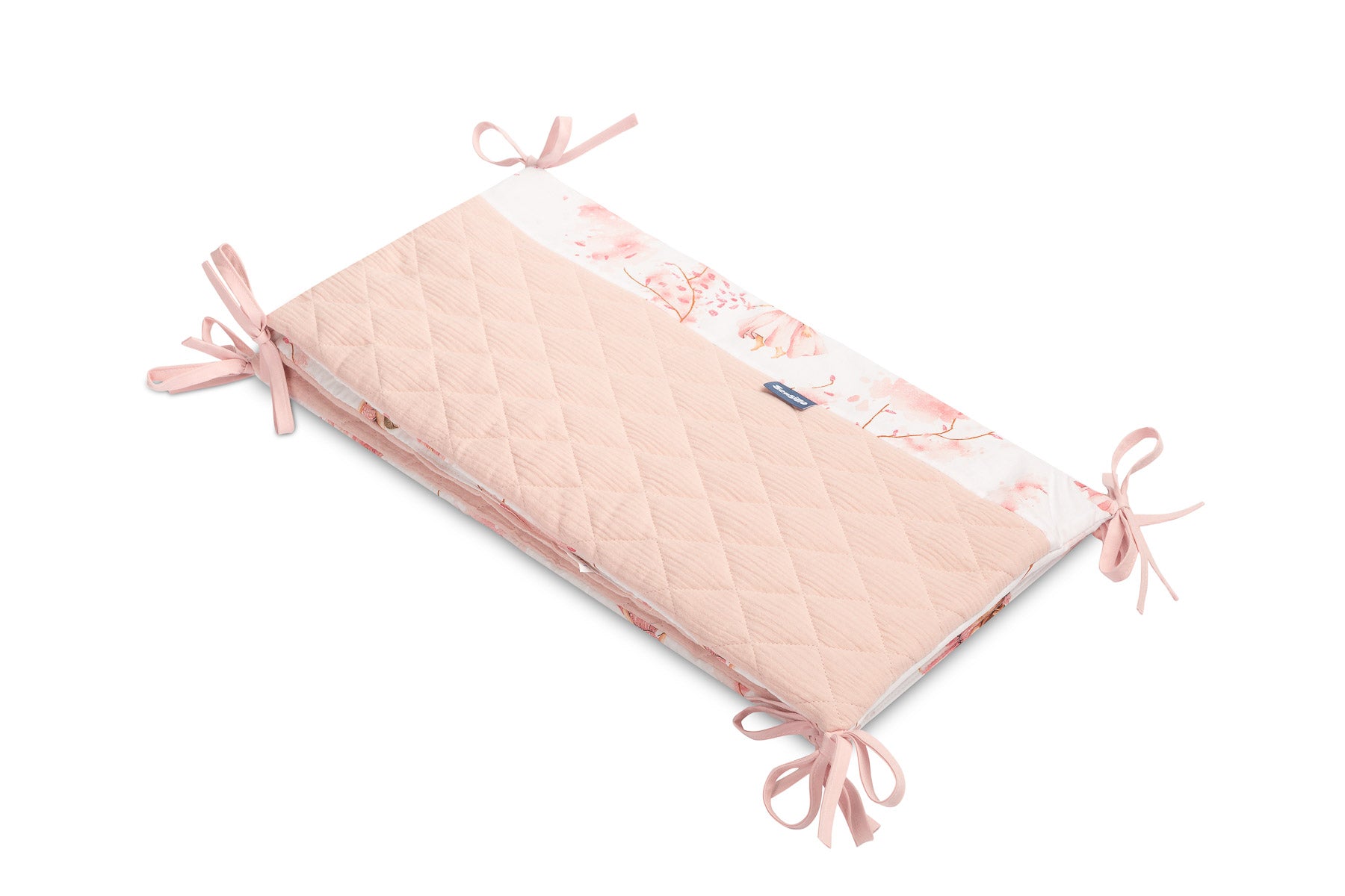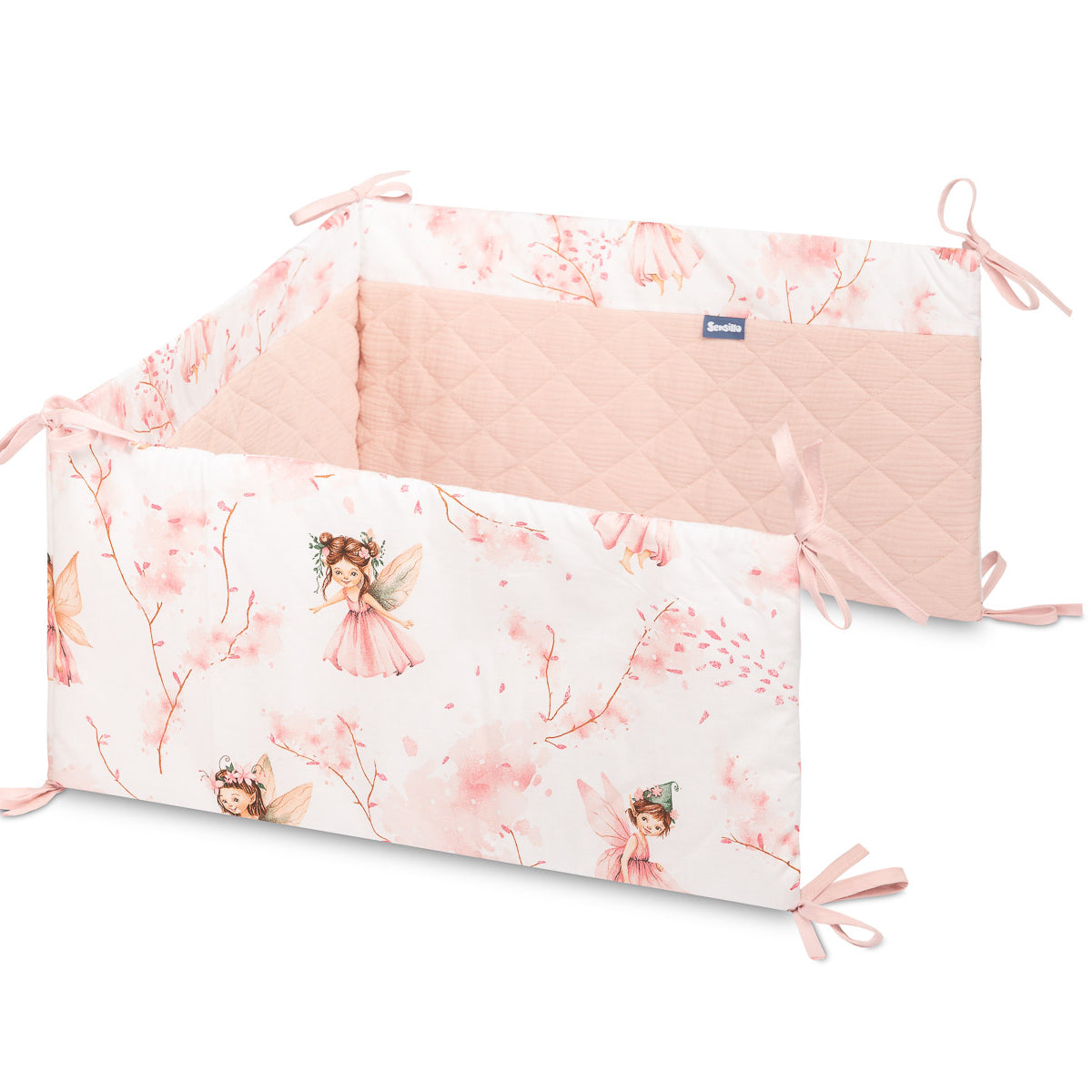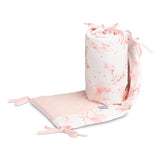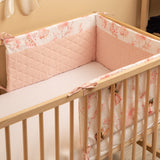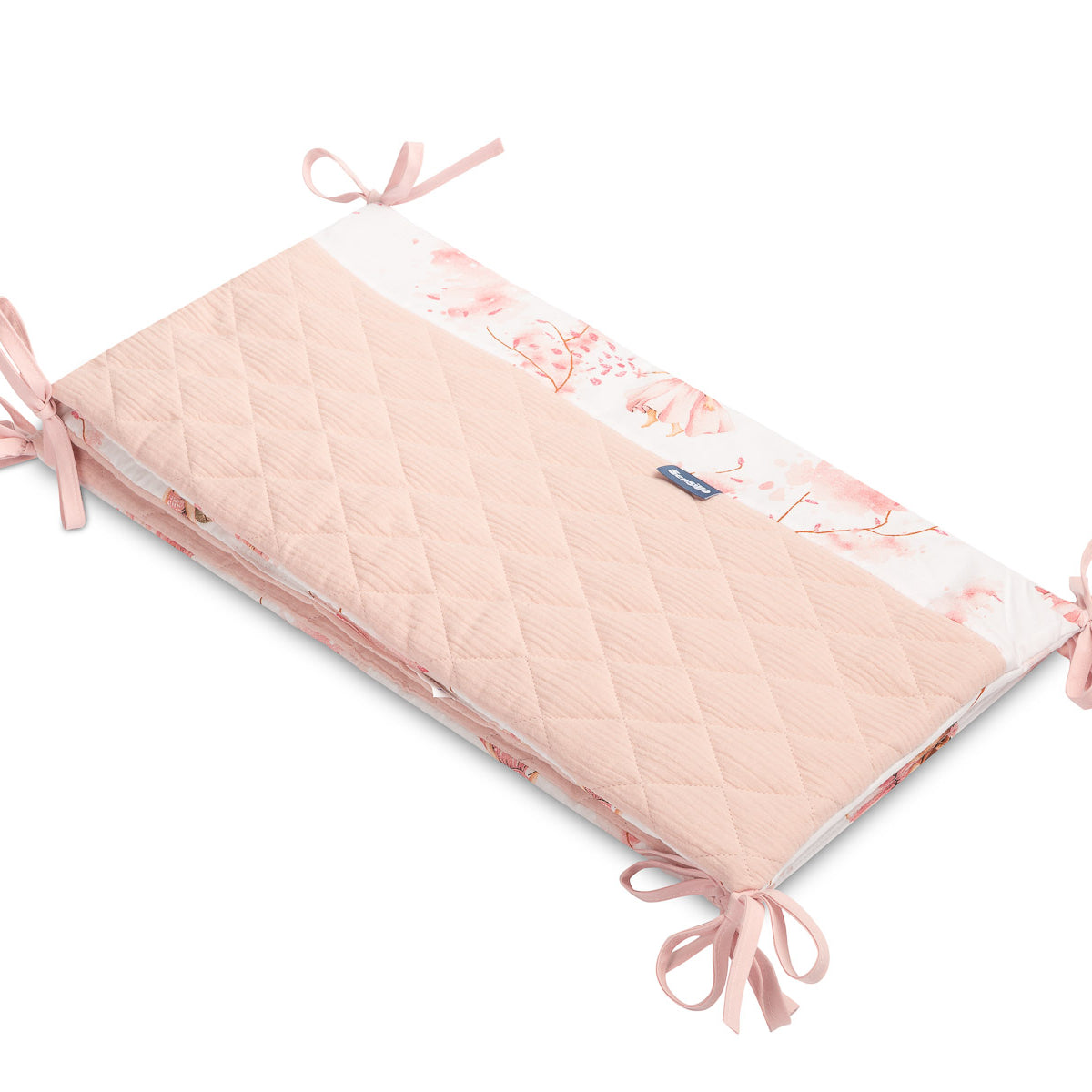 Zaštitna obruba za krevetić pristaje svakom standardnom dječjem krevetiću. Obruba je izrađena od mekog tiskanog pamuka i ugodnog muslina na dodir. Punjenje od poliestera zaštitit će bebu od ozljeda tijekom kretanja po krevetiću. Obruba ostaje na svom mjestu zahvaljujući trakama kojima se pričvršćuje na prečke krevetića. Namijenjena je za krevetić dimenzija 120x60 cm. Obruba će biti izvrstan dodatak dječjoj opremi.